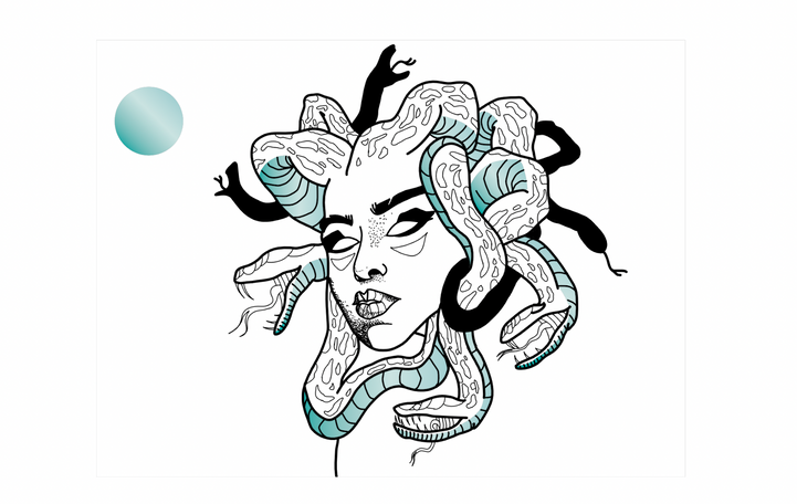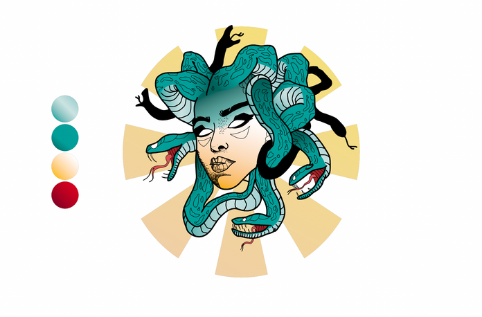 A breakdown of my drawing process from reference image to first sketches to the final piece.